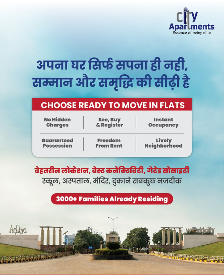 Copyright © City Apartments 2022. City Apartments Project UP Rera No https://up-rera.in/ UPRERAPRJ1498. The website belongs to Authorized Channel Partner "TRUHOMES REALTY" UP RERA NO UPRERAAGT10997 of AGARWAL ASSOCIATES PROMOTERS LIMITED (Aditya Builder). The content of website is for information purposes only. Images for representation purpose only. Prices mentioned are subject to change without notice and properties mentioned are subject to availability. We may also send updates to the mobile number/email id registered with us.